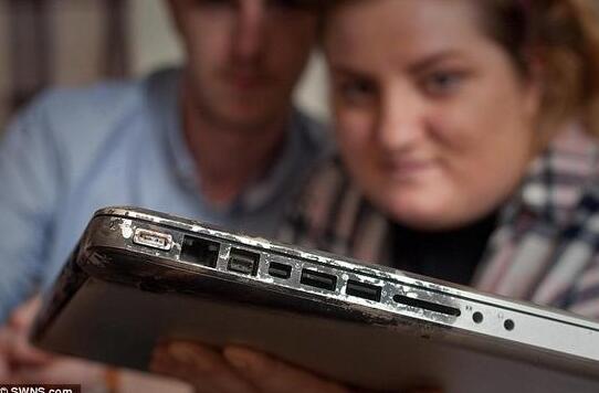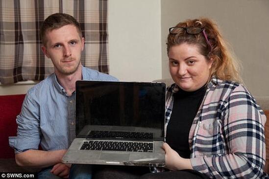 據(jù)英國《每日郵報》3月21日報道,英國一名女子外出上班時將蘋果筆記本留在家中充電,結(jié)果充電器故障引發(fā)大火,燒毀整座屋子。蘋果公司承認這一事實,卻來回踢皮球,不予賠償。圖為遭遇不幸的Impey(右)和她的未婚夫Martyn Taylor,他倆手捧那臺出事的MacBook Pro電腦。