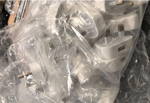 該機(jī)構(gòu)執(zhí)法人員從倫敦的一個(gè)倉庫查獲了大批假冒的蘋果充電器、電池、數(shù)據(jù)線、耳機(jī)和電源適配器。