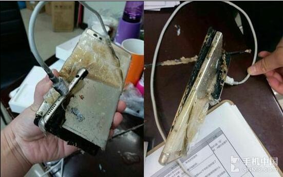 微博爆料稱,事故發(fā)生在南京,從圖片來看這臺手機已經(jīng)“面目全非”,不知道的還以為是扔進了兵馬俑的燒制現(xiàn)場,充電線依然堅挺地連接著,但是機身底部已經(jīng)和機身完全脫離,整機看起來就像是一塊融化的黃油。