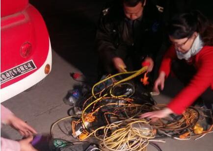 12日晚上9時許,北林路辦事處安監(jiān)辦的工作人員帶領巡防隊員一起,首先來到了位于朝陽路上的園藝小區(qū),發(fā)現小區(qū)的居民樓上,橫七豎八地從不少居民家的窗戶里扯出了電線。電線垂到樓下后,有的連在一個插線板上,而插線板上又插著電動車的充電器。也有的飛線帶有插頭,直接接在電動車的電瓶充電器上。為了消除安全隱患,安監(jiān)人員及時切斷了這些飛線的電源,收繳了一批正在充電的電動車充電器。隨后,工作人員在恒生家園小區(qū)里,也發(fā)現了飛線充電的亂象。在金明路姚橋小區(qū)里,一棟居民樓上竟然扯了40多條充電線,這些電線粗細不一,顏色雜亂,工作人員將線剪斷后,竟然盤了一大捆。