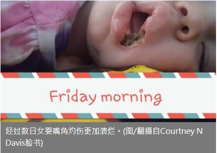 女嬰母親戴維斯(Courtney N Davis)在個人臉書上PO出自己女兒的傷勢,并在文中表示女兒僅是把充電器放入口中數(shù)秒,拿出來后就發(fā)現(xiàn)左邊嘴角被灼傷至白色,之后幾天傷口持續(xù)惡化,嘴角整個潰爛,因此趕緊帶到醫(yī)院給醫(yī)生診治,醫(yī)生證實女嬰的嘴角是受到電灼傷,而這是充電器所造成的,戴維斯把他女兒受傷后的照片分享給大家看,希望藉此可以提醒家長們多加注意,而這篇貼文也已經(jīng)被轉(zhuǎn)發(fā)了30多萬次,戴維斯表示慶幸,女兒并沒有感覺到灼傷,她表現(xiàn)出像是沒有任何問題的樣子,之后女嬰也將接受整形手術(shù)回復(fù)原來的可愛樣貌。