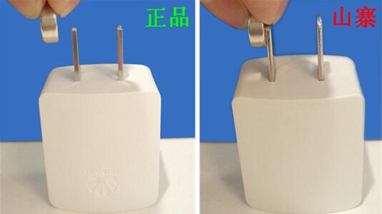 第四、看插頭形狀。正品金屬插頭呈輕微弧形,山寨插腳頭部呈梯形或者三角形;此外正品金屬插頭真材實(shí)料,插頭寬厚,而山寨插頭則偷工減料,較為薄窄。