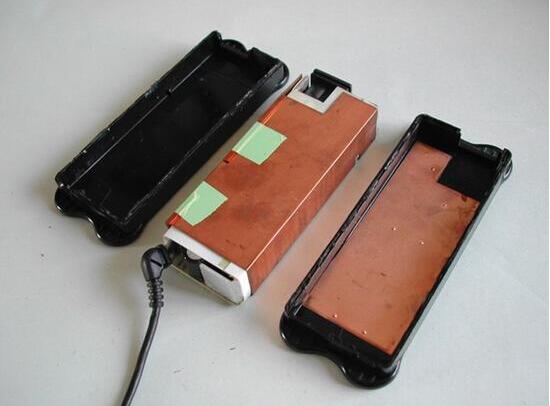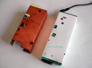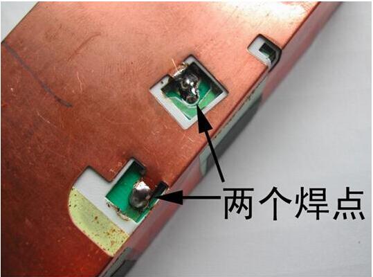 2、打開適配器的外殼,適配器外還包有銅質(zhì)的屏蔽保護(hù)層,用美工刀隔開屏蔽層上的膠帶,再用電烙鐵焊開屏蔽層和電路板鏈接上的兩個焊點(圖3)就可以取下屏蔽保護(hù)層了。