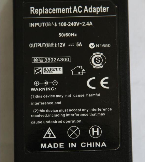 這就是適配器的外觀,標稱輸入:100V-240V,2.4A;輸出12V,5A。